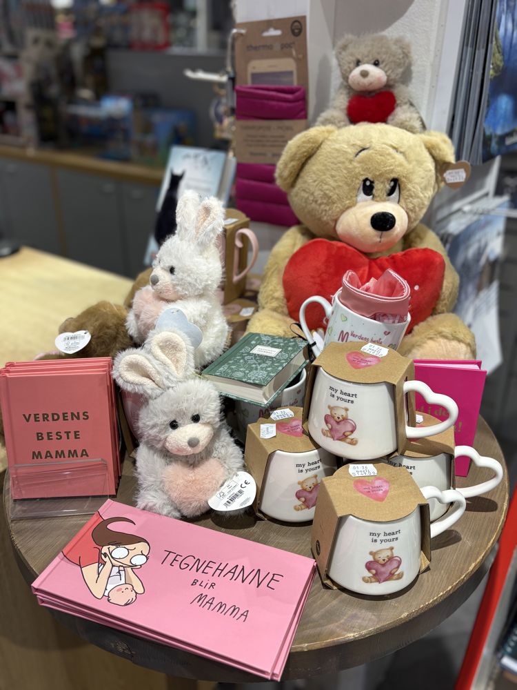 Hos Norli og Traktøren finner du morsdagskort, notatbøker, søte bamser, bøker, kaffe og mange andre fine gaver til mor.