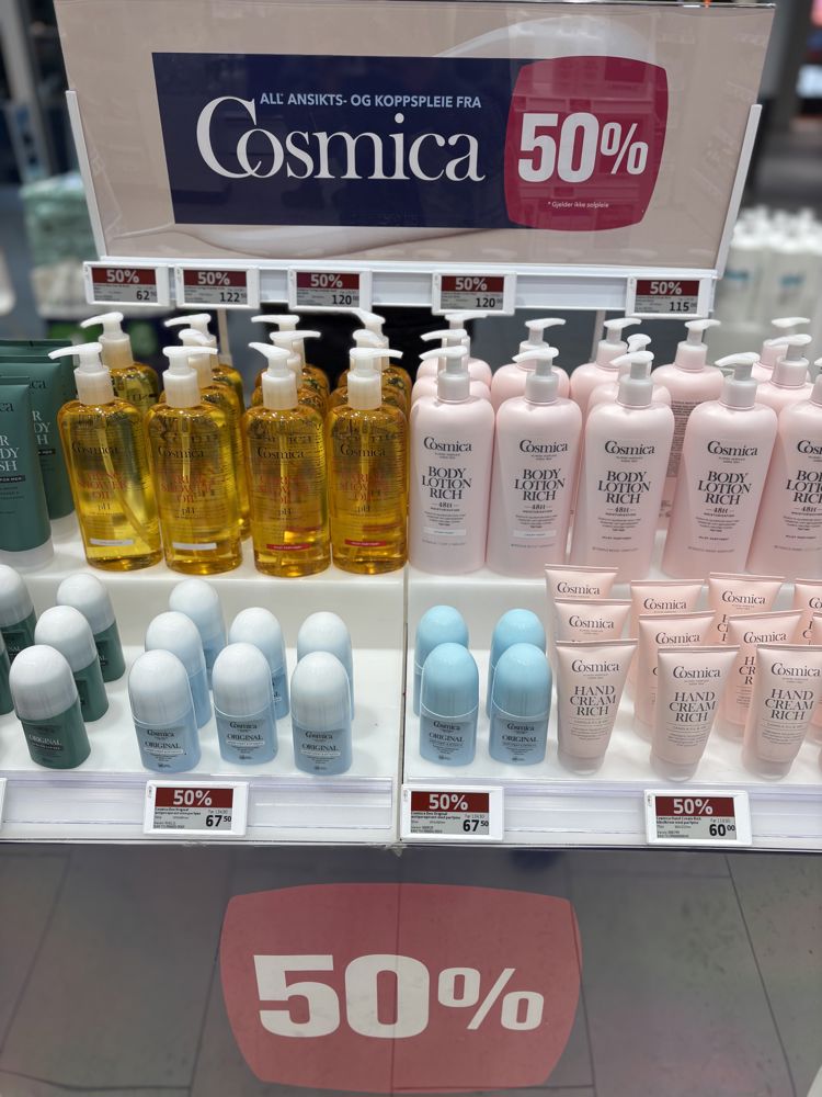 50% rabatt på kroppsprodukter til dame fra Cosmica