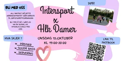 Bli med Intersport Brotorvet og Heistad Løpeklubb Damer onsdag 15.oktober kl. 18.30-20.00. Du kan velge om du vil ta 2,5km eller 5km, og om du vil gå, løpe eller jogge. Her er det lavterskel - og fokuset er på å støtte en svært viktig sak, og ha en hyggelig sosial kveld sammen!