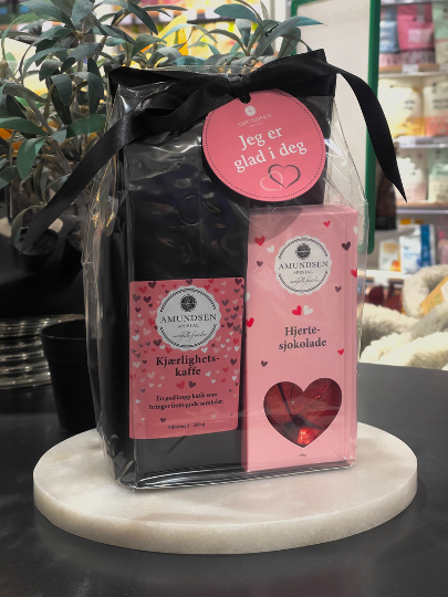 Inneholder kaffe og hjertesjokolade